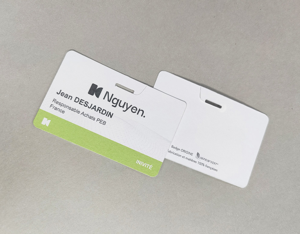 Le logo Imprim’Vert® est généralement apposé au verso des badges.